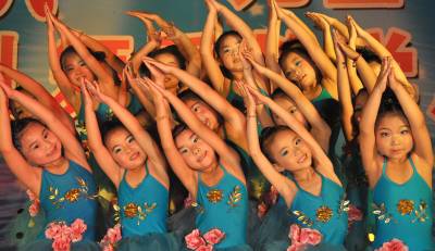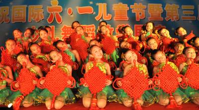 5月30日晚,一群小朋友在表演群舞《蓝天蓝》。当晚,恩施州通艺青少年文艺活动中心举办庆祝国际”六一”儿童节文艺晚会,近两百余名小朋友表演了扇子舞、新疆舞等舞蹈,以此喜迎”六一”到来。