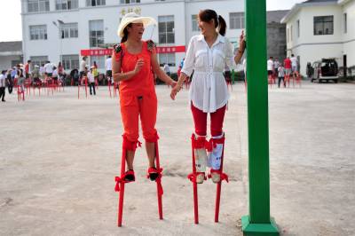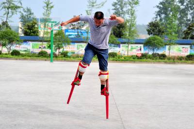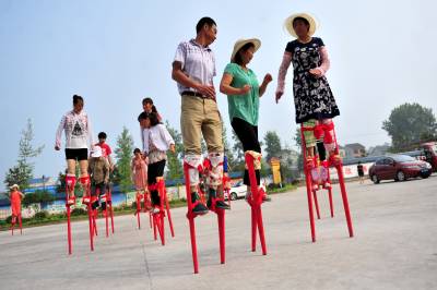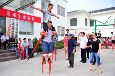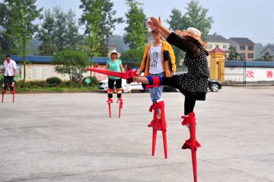 夷陵:乡村时兴“高大上” 男女老少踩高跷