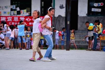 7月18日,宣恩县椒园镇庆阳坝村庆阳小学操场上,已经放暑假的孩子们正在华中科技大学“大手拉小手”公益团队队员的带领下进行一场别开生面的趣味运动会。