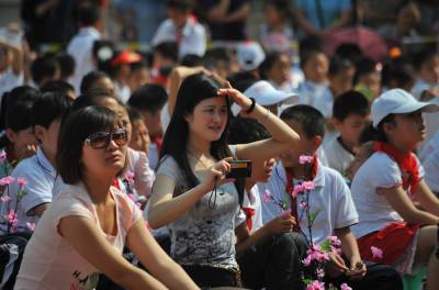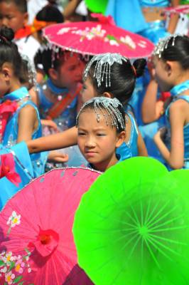 5月30日,湖北三峡库区巴东光明小学,花的海洋,《童心童艺童趣》主题校园文化艺术节上,孩子、老师、家长共庆六一。 据了解,该校以书香校园创建活动为载体,培养孩子们好读书、读好书的习惯,着力提高学生综合素质。”六一”其实不只是孩子的节日,也是老师和家长的节日,以下是节日上的一组镜头。(张晓峰摄)