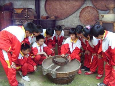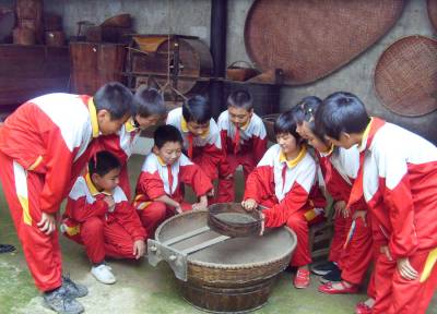 5月31日,曾都区洛阳镇张畈小学同学来到洛阳千年银杏谷,参观胡家河民俗博物馆,亲身体验古老的木轮牛马、犁耙锄耧、织机纺车、手工编艺等,追忆炎帝神农开创的农耕文明。本报视界网杨文明凌嗣源摄