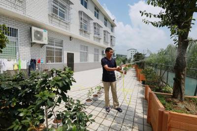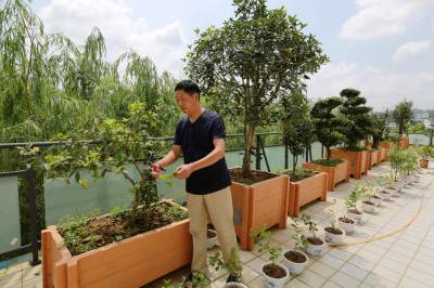 7月23日,竹山县麻家渡镇罗家坡村三组农民张永意正在自家庭院里为花木盆景浇水、剪枝。近年来,该县结合“绿满竹山”和“内修人文,外修生态”工程,有效实施山绿、路绿、河绿、城绿、园绿、村绿、院绿、地绿,强力打造“山区绿色发展示范区”,建设绿色生态家园,提升群众幸福生活指数。