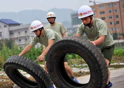 5月31日,宣恩县公安消防大队的战士们冒着小雨进行拉练。战士们”平时多流汗、战时少流血”勉励自己刻苦训练——在减少自身抢险救灾过程中的伤亡时,确保群众不”流血”。而正是因为如此,该县消防部队数十年来,没有发生过抢险过程中的人员伤亡事故,而且有效保障了人民群众生命财产安全。(视界网签约摄影师:宋文摄)