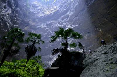 据了解,位于湖北省西部山区的锣圈岩天坑,四周植物茂密,坑内峭壁森然,底部面积近百亩,除绳降外无法进入,数十年来很少有人涉足,动植物在天坑底部繁衍生息,其生态系统相对独立的,是一处宁静和谐、与世隔绝的“动植物王国”。 (视界网宋文摄)