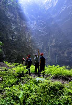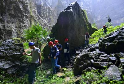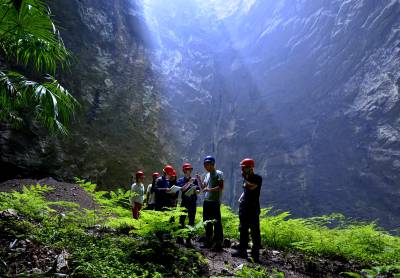 连日来,来自浙江大学、悉尼大学的学生们在湖北省恩施土家族苗族自治州宣恩县深达290米的锣圈岩天坑里进行暑期社会实践。师生们将用一个多月的时间探秘天坑里的“动植物王国”,并结合他们所学的旅游、文化专业,探索研究天坑及周边区域生态保护及旅游开发的可行性。