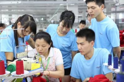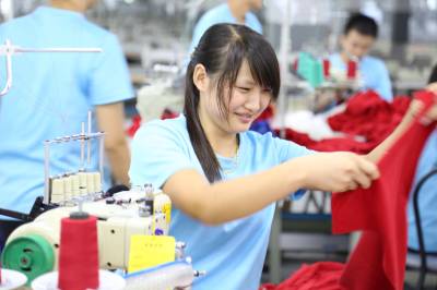 7 月23日,竹山县城关镇二道坊村返乡农民工杨丽、张文文、李艳正在县城通济沟工业园嘉麟杰服饰车间忙着生产订单服装。该项目总投资3.39亿元,年生产各类成衣1500万件。为鼓励在外人员返乡创业就业,该县积极在信息、资金、技术等方面进行扶持,已吸引了近3000名农民返乡参加县里就业培训,在县产业集聚区通济沟、邓坪、桥东工业园实现了就业,平均月薪达3000元。