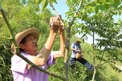 战三夏 保丰收 (图文) 竹山县宝丰镇中心学校 朱本双 电话:13177481456 邮编:442213 电子信箱:zsbfzbs@126.com 身份证号码:422624196910182052 7月25日,竹山县擂鼓镇西河村村民正在忙碌着嫁接核桃树。日前,当地农民抢抓时机,抓好夏种、夏管、夏收“三夏”工作,确保农业丰收。