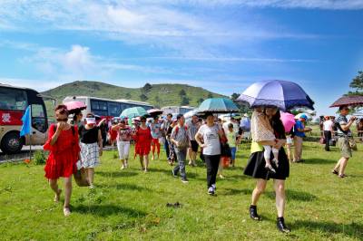 据悉此次千人集体登山,该景区安排多种活动,有16个社区代表队参加高山广场舞大赛,游人观看骑马技巧表演,游人对生态高山草原,适宜的温度,绿草堆翠,孤松卖怪等,充满诗情画意。