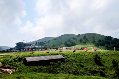 7月25日是周末,宜昌迎来入夏最高气温36度,而盛夏百里荒草原风景区最高气温28度,被游人称为不用电的“降温空调”。当天,百里荒景区组织26辆大客,40多辆私驾车,1000多名旅客集体登山纳凉,使景区盛夏十分热闹。