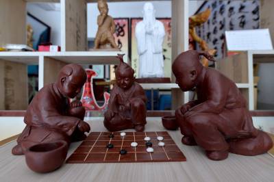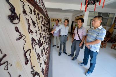 今年51岁的刘汉国是保康县两峪乡中学学校语文、美术教师,多年来一直利用山上废弃的树根从事根书、根雕、古桩盆景和泥塑创作,迄今作品已达2000件,多次获奖。为了让刘汉国的根书、根雕、盆景、泥塑作品“走出深闺”,两峪乡政府2013年在集镇中心地段为其一次性免费提供5年房租、6000元装修费,支持他开办“鹿鹤民间艺术展馆”。展馆展陈面积400平方米,展示有根书、根雕等作品百余件。(视界网 杨韬 摄)