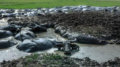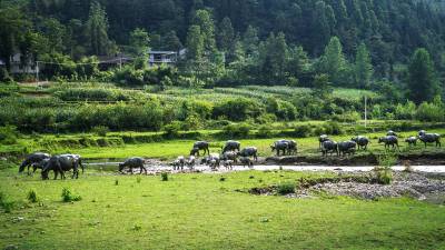 恩施自治州宣恩县椒园镇洗草坝湿地,夏季草木茂盛,溪水潺潺,适宜放牧。当地村民有敞放水牛的习惯,每年三月到十一月,都是将水牛敞放。水牛特别怕热,它们除了上午气温不高时在坝子里吃草外,其余时间都是在坝子里的泥塘里“困塘”,将浑身裹满稀泥巴,一是可降温,二是可防止蚊子叮咬。它们的避暑,真牛!