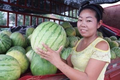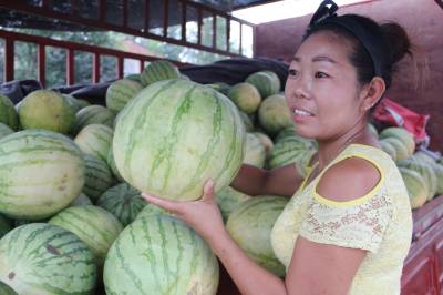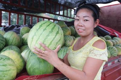 放飞创业梦想 7月27日,谷城县冷集镇隋洲村返乡创业女青年沈玉梅在销售无籽西瓜。冷集镇顺应青年农民返乡创业愿望,搭建平台、提供资金、技术等支持,260多位青年农民在家乡实现创业梦想。 视界网马明刚摄