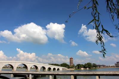 2015年7月27日,云梦城蓝天、白云、碧水、绿树,空气清新,美景如画,令人陶醉。近年来,云梦县采取城区禁止燃放烟花爆竹、禁止露天焚烧秸秆、关停污染企业等众多措施治理环境污染,确保蓝天白云,空气质量优良,收到良好的效果。