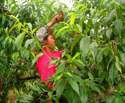 油桃丰收乐了孝昌果农又到一年油桃成熟时。5月29日,孝昌县丰山镇绿丰果业基地一派繁忙景象,60多名果农忙着采摘油桃。丰山镇地处大别山南麓,山场岗地资源丰富,避风朝阳的特殊小气候环境适宜果树生长。在当地党委、政府引导下,该镇始终把林果业作为最具优势的产业来培植,全力发展特色产业,努力做强林果大镇。引导农户抓好农业结构调整,初步形成了苗木、冬枣、茶叶、早蜜桃等四大特色板块。优质果树种植面积已达3万亩,其中400亩种植区的果树品种由原单一的早蜜桃发展为引进美国的凯特杏、黑李、日本新川中岛桃等5大系列25个品种,产品远销黑龙江、辽宁、福建、广东等地。目前,该镇优质油桃种植已达120亩,亩产在1500公斤左右,给果农带来收益38万元。(孟祥宇摄)15072129070