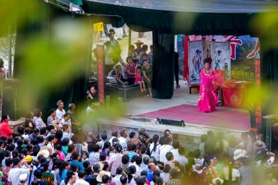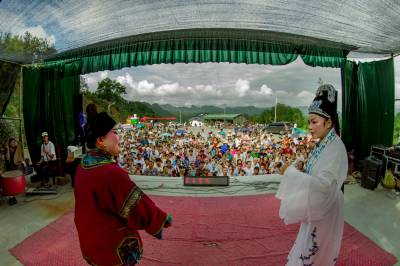 7月26日上午, 蕲春县檀林镇雾云山村男女老少脸上露出热情洋溢的笑容, 整过村庄就象过春节一样喜庆热闹,广场上集满了五百人在村口围观观看黄梅戏《婆媳情》。这里正在举办雾云山首届星光节, 村邀请了浏河镇黄梅戏剧团在村门口为村民和游客表演黄梅戏,让老百姓足不出户就可以享受到丰富的文化大餐,受到群众的广泛欢迎。自从去年4月初,黄冈市摄影家协会主席方华国在蕲春县檀林镇发现大量高山梯田后, 雾云山村就出了名。这个村是一个古老的村落,已有上千年历史。史载约为唐朝年间一田姓官员来此避难躬读开辟,传延至今。