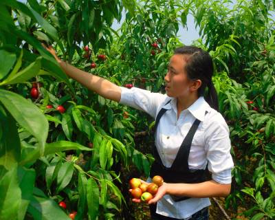 孝昌大学生”村官”体验油桃采摘生活