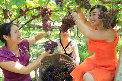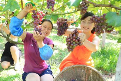 竹山农产品网上走四方 7月27日,竹山县楼台乡三台村观音沟葡萄种植专业合作社女主人雷全翠(左一)正在自家近百亩葡萄园里和大学生网店主一起采摘“黑娃”葡萄,准备通过互联网销售。该县通过建立秦巴电商城、今日竹山农商网两大平台,搭建起200多家农产品实体店,采用“互联网+合作社+基地”新经营模式,在电脑端网上店铺、手机端网上店铺销售,架设起农产品从田头到市场到消费者的“直通车”。 (视界网 陈昌荣摄 ) 竹山县城关财政所 13872773025