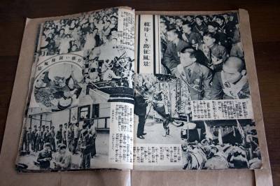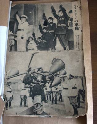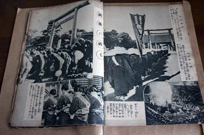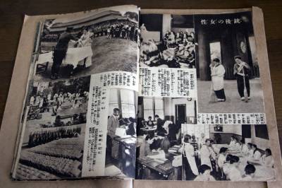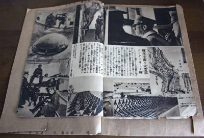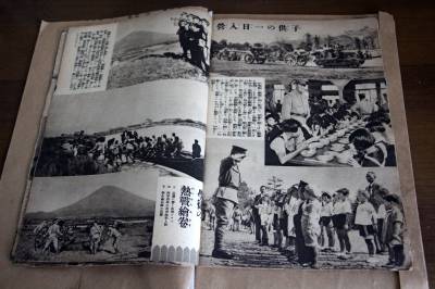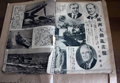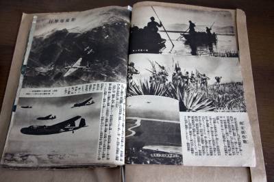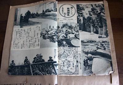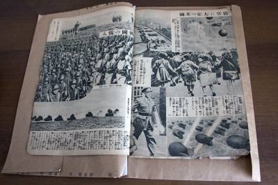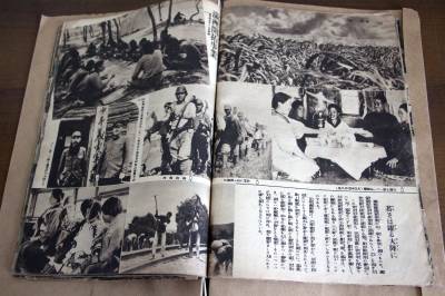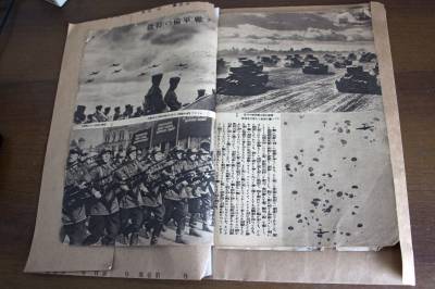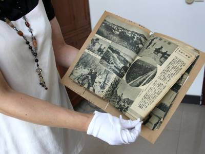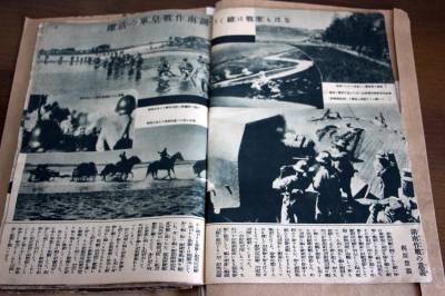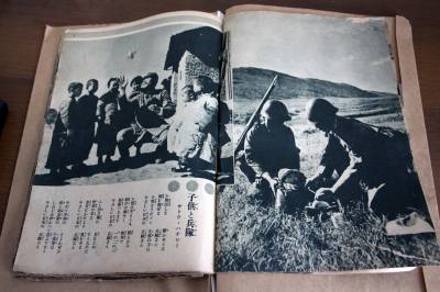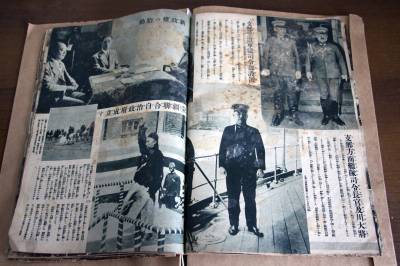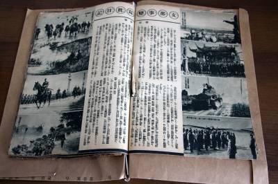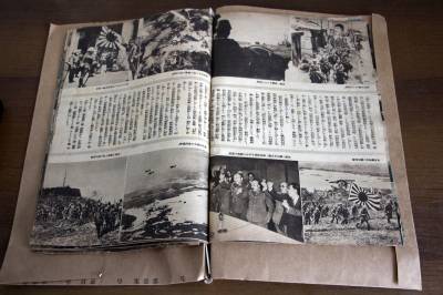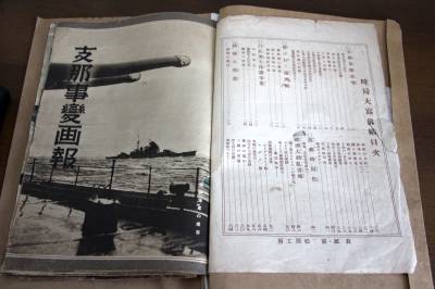 2015年7月28日,云梦县文史档案局工作人员展示新近发现的侵华日军画报。云梦县此次发现的侵华日军画报,为日文原版,1940年(昭和15年)出版,距今75年,名为《时局大写真帖》,16开本,共27页,近200幅图片。画报用文字和图片记录了日军侵占武汉后,进逼湖南长沙,飞机轰炸重庆等地的画面。云梦县文史档案局局长刘建旺介绍,此次发现的日军侵华画报,大量图片和文字真实反映了日军侵略暴行,是日军侵华的铁证之一。