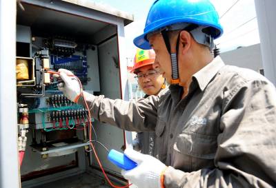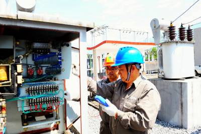 未来一周,全省将出现持续高温天气,国网巴东县供电公司针对电网负荷加重,城乡居民用电负荷急剧攀升等特征,组织精干力量对辖区变电站设备进行检修维护,及时消除设备隐患,确保电网安全运行和城乡居民清凉度夏。图为:7月28日,该公司运维检修员工在35千伏罗坪变电站“诊断”设备故障。 (视界网王祖满 联系电话:15272999779)
