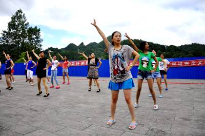 “舞”动新生活 7月29日,在恩施市红土乡中心文化广场上,村民正在备战全省第二届群众广场舞展演。 今年以来,各地群艺(文化)馆积极组织开展“文化力量•民间精彩”全省第二届群众广场舞展演活动,展演分为中青年组和老年组。采取县(市、区)、市(州)逐级展演的方式选拔、组队、推荐优秀团队参加全省集中展演。展示全省群众昂扬向上的精神风貌,能有效帮助健身和健心,引领健康生活方式,促进精神文明建设。(视界网彭绍峰梅德海摄)