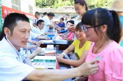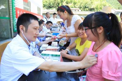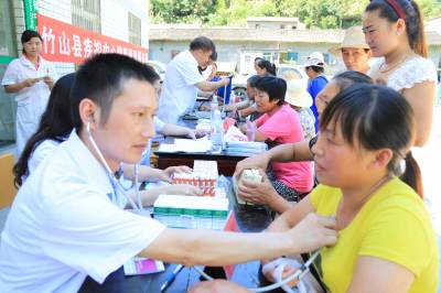 竹山四医院医生赴官渡镇义诊送药 7月30日,竹山县人民医院、中医院等四家医院25名医生深入官渡镇中场、蒲溪等4个村开展为期两天的义诊和送医送药活动。这是该县开展“千名医生进万家惠十万群众”活动的一个缩影。当天,县人民医院等医生分成2组,分别由县卫计局领导带队,头顶烈日,行程一百多公里,深入该镇中场、蒲溪村,为当地近千名群众发放各类健康宣传资料5000余份,现场免费送药达1万多元,走访困难群众20户,还与他们建立了“一对一”帮扶对子。 (视界网 陈昌荣摄 )