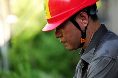 7月29日,受持续高温影响,35千伏巴东沿渡河变电站301电力电缆爆裂,致使沿渡河镇1.2万余户供电中断。国网巴东县供电公司运检员工冒着40多度高温,持续抢修6个小时恢复供电。(视界网:王祖满摄 联系电话:15272999779)