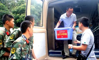 “流动图书”进军营 30日,咸丰县图书馆工作人员正在将图书送给武警官兵。 在“八一”建军节来临之际,该县图书馆将县武警中队、消防大队纳入“流通图书服务点”,每月定期更换新书,以丰富武警、消防官兵的军营文化生活。(视界网马辉、肖旺 摄)