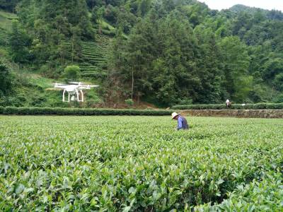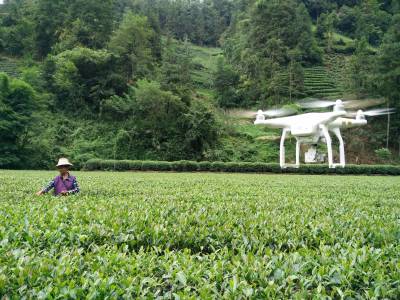 7月31日,一位“无人机”发烧友在恩施市芭蕉侗族乡戽口村“驾驶”无人机,在茶园里通过不同姿态,拍摄茶园美景,用镜头扑捉劳动之美。