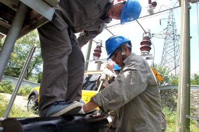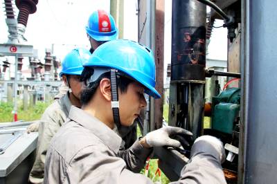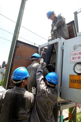7月31日,国网宜昌供电公司变电检修室接到通知,110KV青湖变青51开关机构出现故障,使110KV青洲线路跳闸,由于该线路与多条线路T结,这样就使停电面积增大,这时正是各项用电都达到高峰,为减少停电时间,电力职工冒着高温对出现问题的开关机构进行更换。 如图:中午气温达到40度,电力职工采取最原始的方法,用人力将出现故障的设备进行更换(由于地方条件有限,带电设备不能使用大型起重设备)。