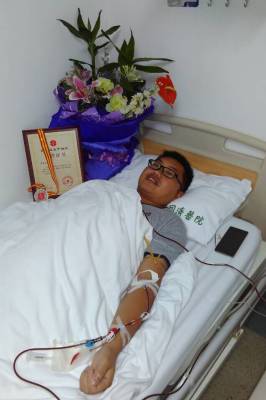 7月25日,李永久坐火车来到省城武汉。7月26日至29日,在华中科技大学同济医学院注射了4天动员剂后,正式采集造血干细胞,实施骨髓移植手术,成为老河口市捐献骨髓第一人。