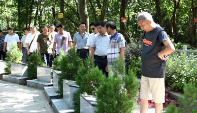 四十多位老战士怀着沉痛的心情为8位烈士敬献鲜花,在墓碑前久久伫立,同老战友们一起回忆过去的峥嵘岁月,相互讲着当时的奋斗经历。当老战友拿出珍藏的画册和纪念品时,老战士们都兴奋的围在一起翻阅,讨论着当时的那些往事,怀念着珍贵的战友情,好像又回到了那个战火纷飞的岁月。