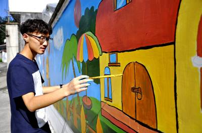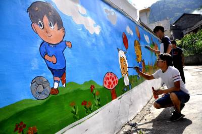 大学生用墙绘扮靓幼儿园