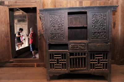 8月3日在湖北恩施林博园金丝楠木民居内拍摄的部分家具。