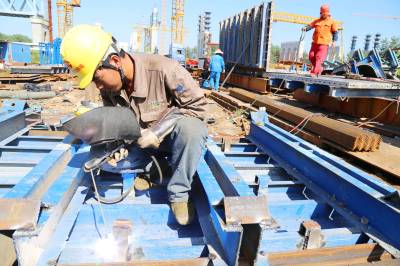 本报荆州讯(通讯员 孟庆虎) 8月2日16时,火辣的太阳炙烤着中铁大桥局蒙华铁路公安长江大桥工地。连日来,气温一直攀升,就在这骄阳似火的三伏天气里,电焊工尹奇帅和他的伙伴们在钢结构加工厂里坚守岗位,挥汗如雨,聚精会神地进行钢模板加工作业。