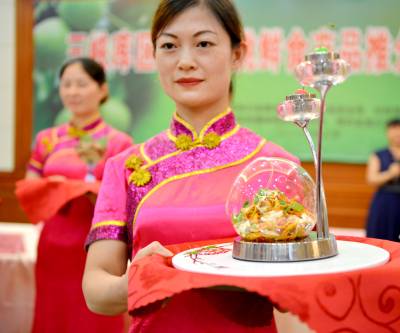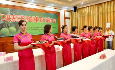 8月3日,工作人员正在展示核桃鲜食产品。当日,屈原故里秭归县隆重举行推介会,向农业加工企业和餐饮业主宣传推介县内新开发、走上餐桌的核桃鲜食产品,包括核桃羹、糖醋核桃酥等18个品种。截止目前,秭归县核桃种植面积达21万亩,年总产量达4500吨以上,年总产值突破1.5亿元,核桃产业已经发展成为全县继柑橘产业之后的第二大林果产业。