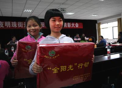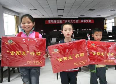 ”留守儿童”得到社会关爱本报讯5月31日,宜昌市夜明珠街道党工委、办事处与西陵区计生局授予汪盈熙等12名父母不在身边的优秀少年儿童授予”金阳光之星”称号。今年来,该街办针对葛洲坝集团在外营地工作特点,启动”金阳光”关爱留守儿童程,从学习、心理、身体、生活、成长等多方面给辖区内223名城市留守儿童进行关爱。本报视界网刘明强摄