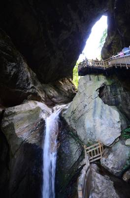 天生桥景区海拔1800米,总面积20平方公里。天生桥飞瀑自峭壁倾盆而下,似银河泻地,玉珠飞溅,展出万种风情;天潭地潭,清澈见底,潭中奇石千姿百态,结伴成群的鱼儿自由穿梭,令您心旷神怡。