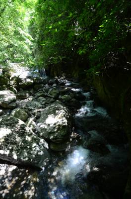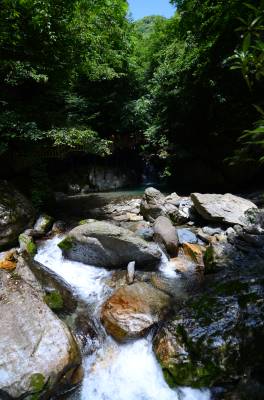 这是一个集奇洞、奇桥、奇瀑为一体的休闲健身、探险揽胜的生态旅游区,天生桥飞瀑自峭壁倾盆而下,似银河泻地,山岩叠嶂,长满野花绿树,因遍生兰草,幽香四溢,起名为兰花山,沿着桥头岩石,穿过森林,有“地潭”,又称“阴潭”,池水深约2米,清澈见底,穿过九泉幽谷,便来到了天潭,又称“阳潭”,此潭有神农架多种鱼类,如黄骨头、红尾巴、石鱼等,还有国家二级保护动物大鲵。