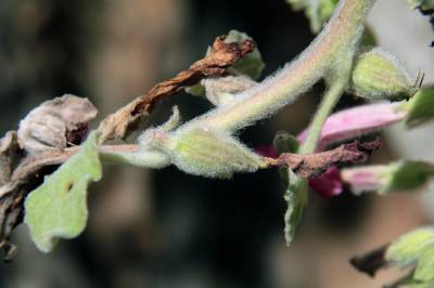 呆白菜植体密被白色绵毛,在茎、花梗、叶柄及萼上的绵毛常结成网膜状,高25-50厘米;茎简.单或基部分枝,多少木质化,近于具花葶。基生叶较厚,多少革质,具长3-6厘米之柄;叶片卵状矩圆形,长椭圆形,长7-13厘米,两面被白色绵毛,边缘具粗锯齿或为多少带齿的浅裂片,顶部钝圆,基部近于圆形或宽楔形。花具长0.6-2厘米之梗;小苞片条形,长约5毫米,着生于花梗中部;萼长1-1.5厘米,小裂齿长3-6毫米;花冠紫红色,狭筒状,伸直或稍弯曲,长约4厘米,外面被多细胞长柔毛;上唇裂片宽卵形,长约5毫米,宽6毫米;下唇裂片矩圆状卵形,长约6毫米,宽5毫米;花丝无毛,着生处被长柔毛;子房卵形,无毛,长约5毫米;花柱稍超过雄蕊,先端2裂,裂片近于圆形。蒴果矩圆形。种子小,矩圆形。花期7-9月。