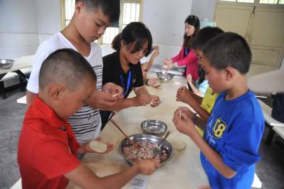 8月5日,来自北京、上海等地的大学生志愿者来到鹤峰县中营镇学校,开展暑期关爱农村留守儿童活动。志愿者与孩子们开心游戏,包饺子,共进“爱心午餐”,分享快乐。 据了解,该县有在校留守儿童近5000名。为了让留守儿童过一个欢乐、有意义的暑假,各乡镇学校结合留守儿童的实际需要,充分发挥各自优势,通过大学生志愿服务、“希望家园”、城乡孩子联谊等方式,广泛开展丰富多彩的关爱活动,让孩子们感受到家的温馨和社会的温暖。