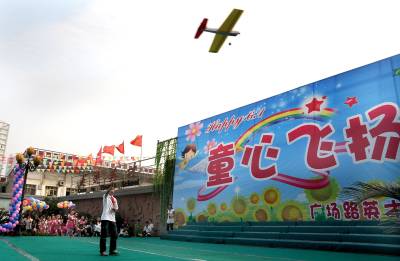 童心飞扬庆”六一”5月31日,黄石市广场路英才学校举办庆”六一”童心飞扬文艺演出,学生们载歌载舞,庆祝自己的节日。当日,该市一些学校、幼儿园也开展各种庆祝活动。图一:该校学生正在进行航模飞机表演。图二:图为学生们舞动国旗,庆祝自己的节日。黄石市黄石日报摄影部邱孝威摄