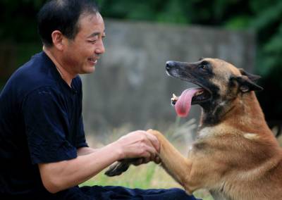 8月6日早晨6点,当人们还在空调房没有睡醒的时候,湖北省武穴市公安局警犬基地训犬员胡均亚已经带着他的“搭档”---被公安部命名为“功勋犬”的马犇,抢在气温还没有升高之前,就在训练场上已经演练开了每天必修的功课--“跃、跳、扑、咬”等基本功训练课题。据了解,该基地是湖北省公安厅实训基地,胡均亚和他训练出来的警犬在全国、省、市级竞技中,无数次夺得金、银、铜牌。视界网冯怡红摄