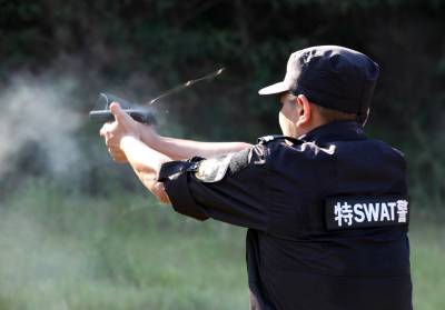 谷城特警强化各种技能训练 “嘭嘭嘭”,3发子弹瞬间从手枪中射出,颗颗子弹命中目标。8月6日,谷城县公安特警正在进行手枪速射训练。为了加强安保,更好地应对突发事件,维护社会稳定,确保人民生命财产安全,谷城特警从即日起开始强化各种技能训练,进一步提高应急和处置事态能力。 谷城县城粉阳路33号(县宣传部)帅瑜 摄 (手机13972211958邮编441700)