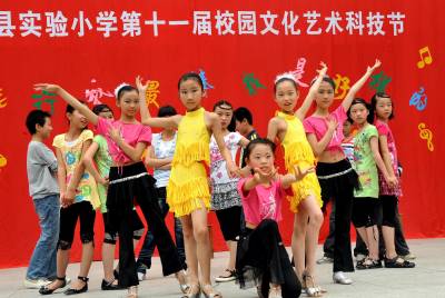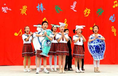 5月31日,学生们展示《串烧NSL》造型。当日,湖北省南漳县实验小学在校园里举办第十一届校园文化科技节庆祝”六一”儿童节。文化科技节中,学校表彰了上年度的”校园小十佳”和校园小名人。全校每个班级的小艺术家们分别上台展示自己的风采。