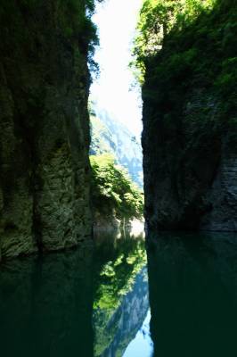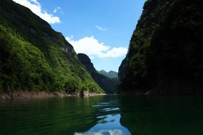 岸上,38度以上的高温让人实在难熬。可是上得船上,一丝丝的凉风迎面而来,仿佛进入了仙境,好不惬意。一座座神奇秀美的山峰让人目不暇接,一个个传奇的景点让人流连忘返。“一线天”、“燕子洞”、“美人晒羞”,五彩缤纷的湖水,还有那钟乳石等天斧之作,让人浮想联翩。