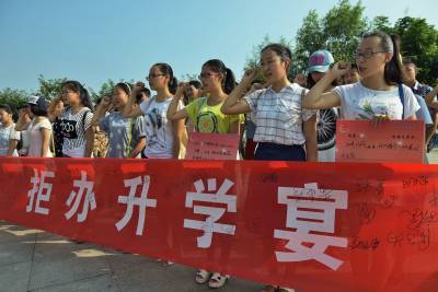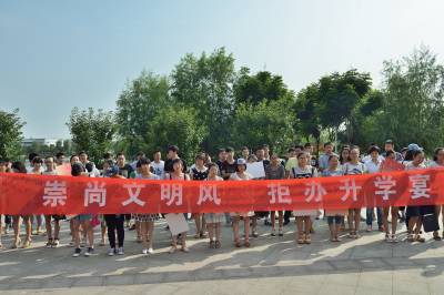 拒绝谢师宴 8月7日,宜都市枝城镇50多名准大学生集体宣誓:祟尚文明风 拒办谢师宴。准大学生们举行了“承诺牌上签字”“横幅上签名”等活动,并向全镇180多名准大学生发出倡议:拒绝谢师宴!