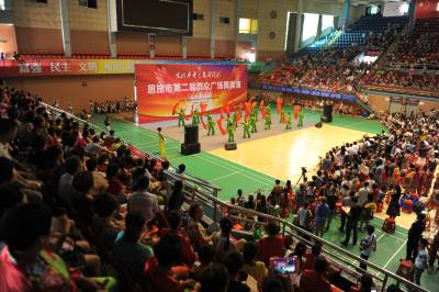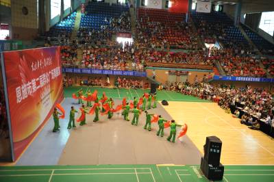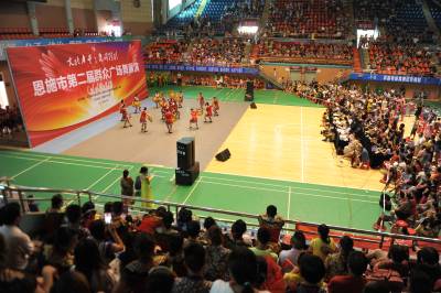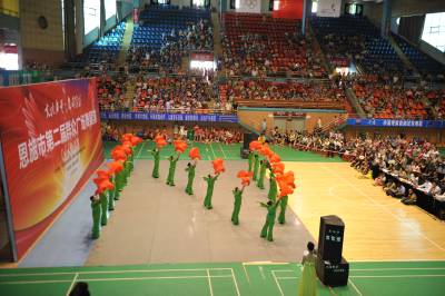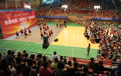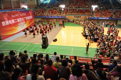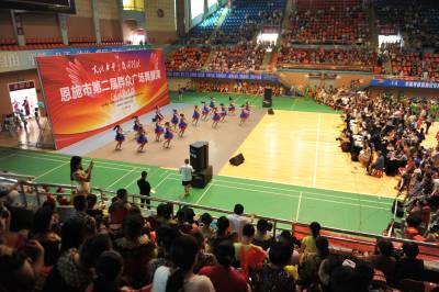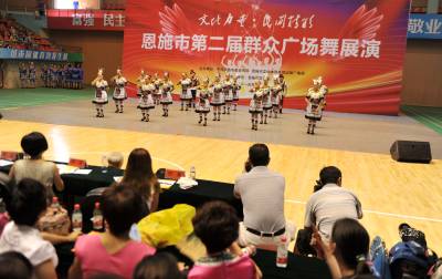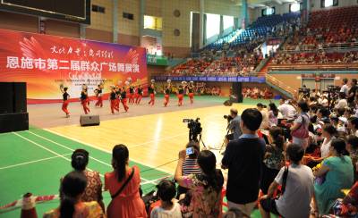 当日,湖北恩施市第二届群众广场舞展演活动在湖北恩施州民族体育馆举行,600余名来自民间的广场舞爱好者、“舞”林高手同台竞技,展示风采。近千名观众及广场舞“发烧友 ”现场观摩、助威。