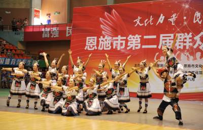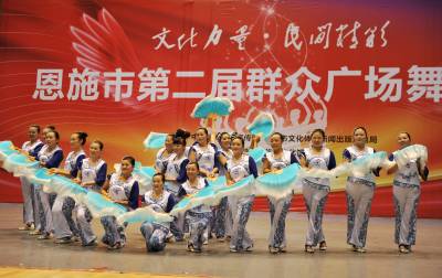 当天,由湖北恩施市委宣传部、市文体新广局主办,恩施市文化馆承办的“文化力量•民间精彩”恩施市第二届群众广场舞展演如期举行,全市17个乡镇办31支广场舞队600多名民间广场舞爱好者参加本次广场舞展演大比拼。展演分成老年组、中青组,本次参赛队员有乡镇机关干部、学校教师、社会文艺团队及广大广场舞爱好者,在本次展演中,具有地方气息、展示当地土家、苗、侗文化的节目内容丰富,夺人眼球。
