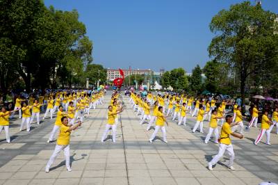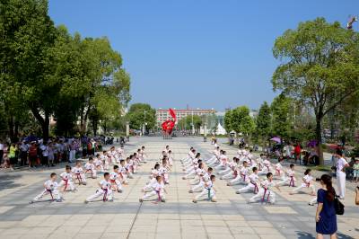 8月8日是国务院规定的“全民健身日”。2015年8月7日,孝感市全民健身领导小组、孝感市文化体育新闻出版广电局在市体育中心,主办2015年孝感市全民健身日活动开幕式。开幕式上,表彰了在孝感市全民健身活动中作出突出贡献的先进单位和个人,进行了全民健身活动部分项目展演,并对全民健身活动期间向公众免费开放公共体育设施作出了安排。(祝大桥 摄)