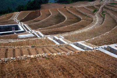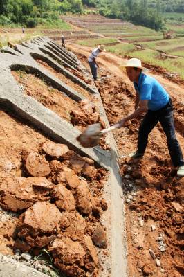 8月7日,房县正在治理军店镇夏家沟坡耕地。该县投资1.23亿元,综合治山、治水、治土,确保“跑水、跑土、跑肥”的三跑地变成“保水、保土、保肥”的三保地。目前,全县6万余亩 “三跑地,通过治理后种植庄稼,年均增收粮食700余万公斤,流转土地每亩增收600元,2014年,农民人平纯收入达5793元。